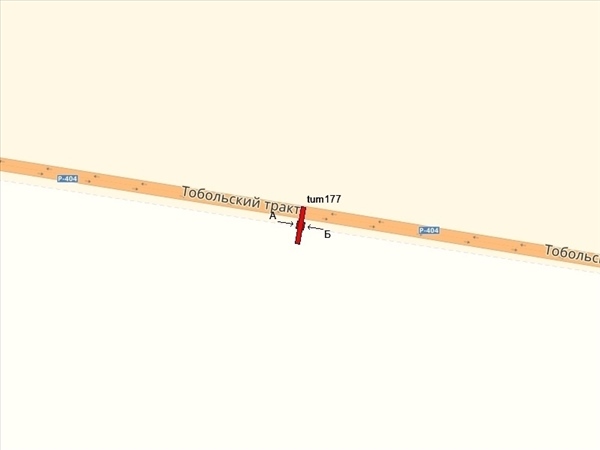 Тобольский тракт 18км +750м, справа при движении из города (сторона Б - при движении в город, к гипермаркету "Лента", ТЦ "Тюмень Сити Молл"("Ашан")